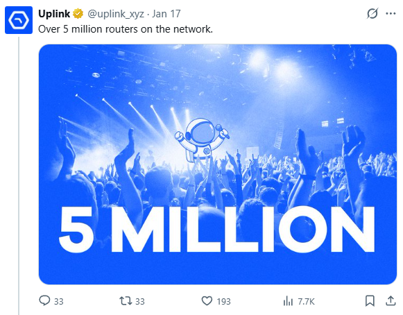 - By the end of January, community members had registered more than 5.5 million routers to the Uplink Network.